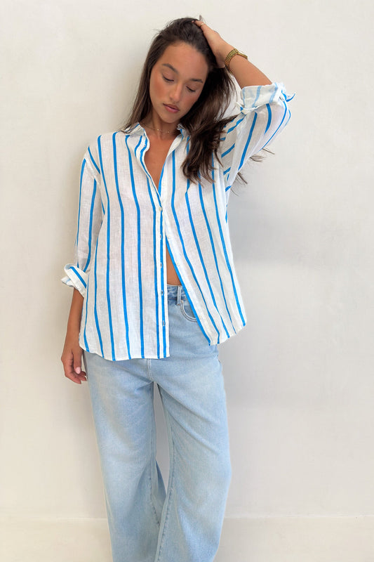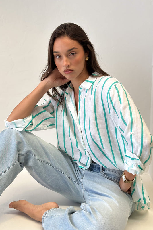Bermuda Green Stripe Boyfriend Linen Shirt